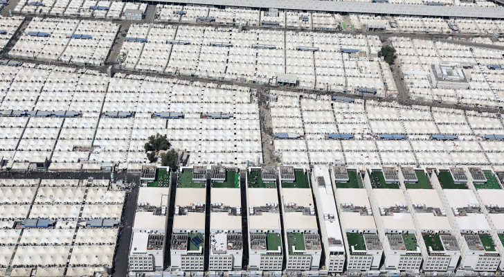 صورة جوية تظهر مخيم الحجاج في منى بالقرب من مدينة مكة المكرمة
