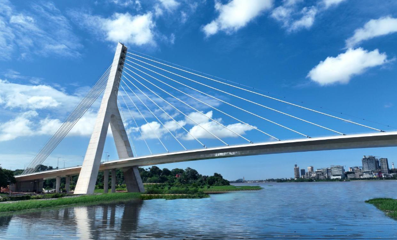 في أبيدجان، العاصمة الاقتصادية لكوت ديفوار، ينتصب جسر كوكو دي، الذي شيدته شركة تشييد الاتصالات الصينية (CCCC)، بشموخٍ فوق المياه اللازوردية لبحيرة إيبري. يُحدد برجه الرئيسي، الذي يبلغ ارتفاعه 108.6 أمتار، والمُطلي باللون الأبيض الناصع، أفق المدينة الجديد. يمتد هذا الجسر المُدعّم بالكابلات على مسافة 1.63 كيلومتر، ولا يُهيمن على مشهد البنية التحتية في غرب أفريقيا فحسب، بل يُمثل أيضًا "بطاقة تعريفية" مميزة لأبيدجان، إذ يُبرز تقنياتٍ رائدة تُرسي معيارًا للتعاون الصيني الأفريقي في مجال البنية التحتية.